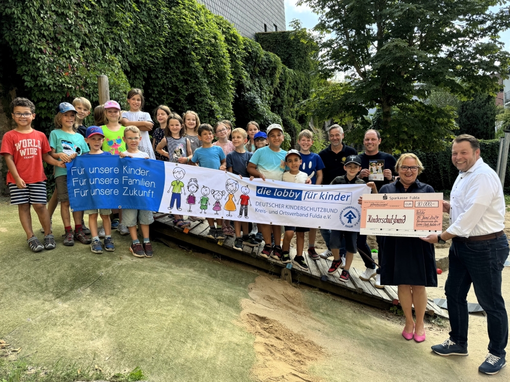 Am 15.08.2024 konnte der Lions Club Fulda durch den Pastpräsidenten Dirk Eckerscham, den aktuellen Präsidenten Björn Steinacker sowie durch den Activity-Beauftragten Dr. Stephan Wübbelsmann unter großem „Hallo“ von über zwanzig Ferienkindern dem Kinderschutzbund Fulda eine Geldspende von 10.000 EUR übergeben, die der Club aus dem großartigen Erfolg seiner letztjährigen Adventskalender-aktion erwirtschaften konnte.